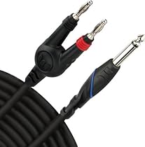 Monster Standard 100 Speaker Cable 50 Feet Straight 1/4 Inch to Dual Bananas Review: Monster Standard 100 Speaker Cable - 50 Feet - Straight 1/4-Inch to Dual Bananas. I use these with a 3000watt amp and 1000 watt speakers. the cord is light per foot and loud for the length. Finally I can stretch the distance of my speakers and not worry about the connections. The bananna end plugs firmly into the amp, and the 1/4" nicely supported end in my speaker. a small green velcrow strap holds the cord in a nice bundle for transportation. Cant confuse polarity with the marked RED and BLACK bananna end... very nice to have. Also provides peice of mind. 1 ... Read more »